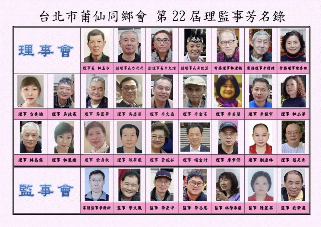 台北市莆仙同鄉會第22屆理監事芳名錄